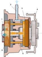 В качестве насоса охлаждающей жидкости используются насосы центробежного типа. Конструкция такого насоса включает рабочее колесо, посаженное на вал со шкивоми помещенное в корпус.