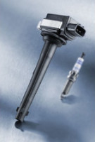 В системах прямого зажигания также используются сдвоенные катушки зажигания. На четырехцилиндровом двигателе устанавливается две таких катушки: одна для 1 и 4 цилиндров, другая – для 2 и 3 цилиндров. Каждая из катушек создает ток высокого напряжения на двух выводах, поэтому искра зажигания всегда происходит одновременно в двух цилиндрах. В одном из цилиндров она воспламеняет топливно-воздушную смесь, в другом происходит вхолостую.