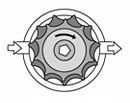 Аналогичным образом происходит работа шестеренного насоса, где топливо всасывается и нагнетается посредством движения внутренней шестерни (ротора) относительно эксцентрично расположенной внешней шестерни (статора). Боковые стороны зуба ротора при вращении образуют в своих промежутках меняющиеся камеры, с помощью которых всасывается и нагнетается топливо.