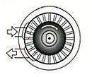 Центробежный топливный насос устанавливается, как правило, в топливном баке. Рабочее колесо (крыльчатка) центробежного насоса снабжено по периметру многочисленными лопатками. Крыльчатка вращается внутри камеры, в которой находятся два канала определенной формы – всасывающий и нагнетательный. Завихрения топлива, возникающие при воздействии на него лопаток, обеспечивают повышение давления.