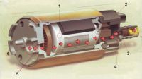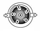 В роликовом насосе топливо всасывается и нагнетается за счет вращения ротора и перемещения в нем роликов. При увеличении пространства между роликом и ротором создается разряжение, и топливо заполняет это пространство. Когда пространство заполнится полностью, подача топлива отсекается. По мере вращения ротора происходит уменьшение пространства, открывается выпускное отверстие и топливо под давлением покидает насос.