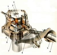 Когда поплавковая камера карбюратора заполняется, запорная игла отсекает доступ топлива в карбюратор. Диафрагма при этом остается в нижнем положении, а привод насоса работает вхолостую (ничего не перемещает). Производительность механического топливного насоса регулируется автоматически путем изменения амплитуды движения диафрагмы.
