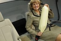 Перспективной конструкцией являются надувные ремни безопасности, которые наполняются газом при аварии. Они увеличивают площадь контакта с пассажиром и соответственно уменьшают нагрузки на человека. надувная секция может быть только плечевой, а также плечевой и поясной. Как показывают испытания, данная конструкция ремня безопасности обеспечивает дополнительную защиту от бокового удара.