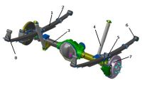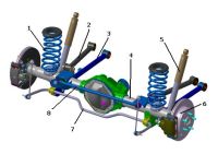 Данного недостатка лишена зависимая подвеска с направляющими рычагами. Самая распространенная схема данного вида зависимой подвески объединяет пять рычагов – четыре продольных и один поперечный. Рычаги одной стороной закреплены на балке моста, другой – на раме (несущем кузове) автомобиля.
