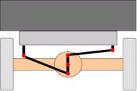 Механизм Скотта-Рассела объединяет два рычага - длинный и короткий. Длинный рычаг одним концом шарнирно соединен с кузовом автомобиля, другим – с балкой моста. Короткий рычаг связывает среднюю часть длинного рычага с противоположным концом балки моста.