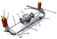 Рычаги обеспечивают восприятие вертикальных, продольных и боковых усилий. В качестве упругого элемента используется, как правило, витая пружина. Гасящее устройство – амортизатор.