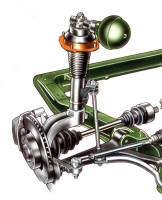 Гидропневматическая подвеска – вид подвески, в котором используются гидропневматические упругие элементы. Впервые гидропневматическая подвеска была применена на автомобилях Citroen в 1954 году. Современной конструкцией гидропневматической подвески является подвеска Hydractive, в которой реализованы ее лучшие качества. В настоящее время устанавливается гидропневматическая подвеска Hydractive третьего поколения. Гидропневматическая подвеска применялась по лицензии на автомобилях Mercedes, Rolls-Royce и др. В конструкции современной гидропневматической подвески предусмотрено автоматическое изменение характеристик, т.е. она является активной подвеской.