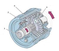 Межосевой дифференциал предназначен для распределения крутящего момента между осями и позволяет им вращаться с разными угловыми скоростями. Межосевой дифференциал может быть симметричным и несимметричным. Симметричный дифференциал распределяет крутящий момент между осями поровну, несимметричный – в определенном соотношении. В раздаточных коробках, используемых в системах полного привода подключаемого автоматически и полного привода подключаемого вручную межосевой дифференциал, как правило, не применяется.